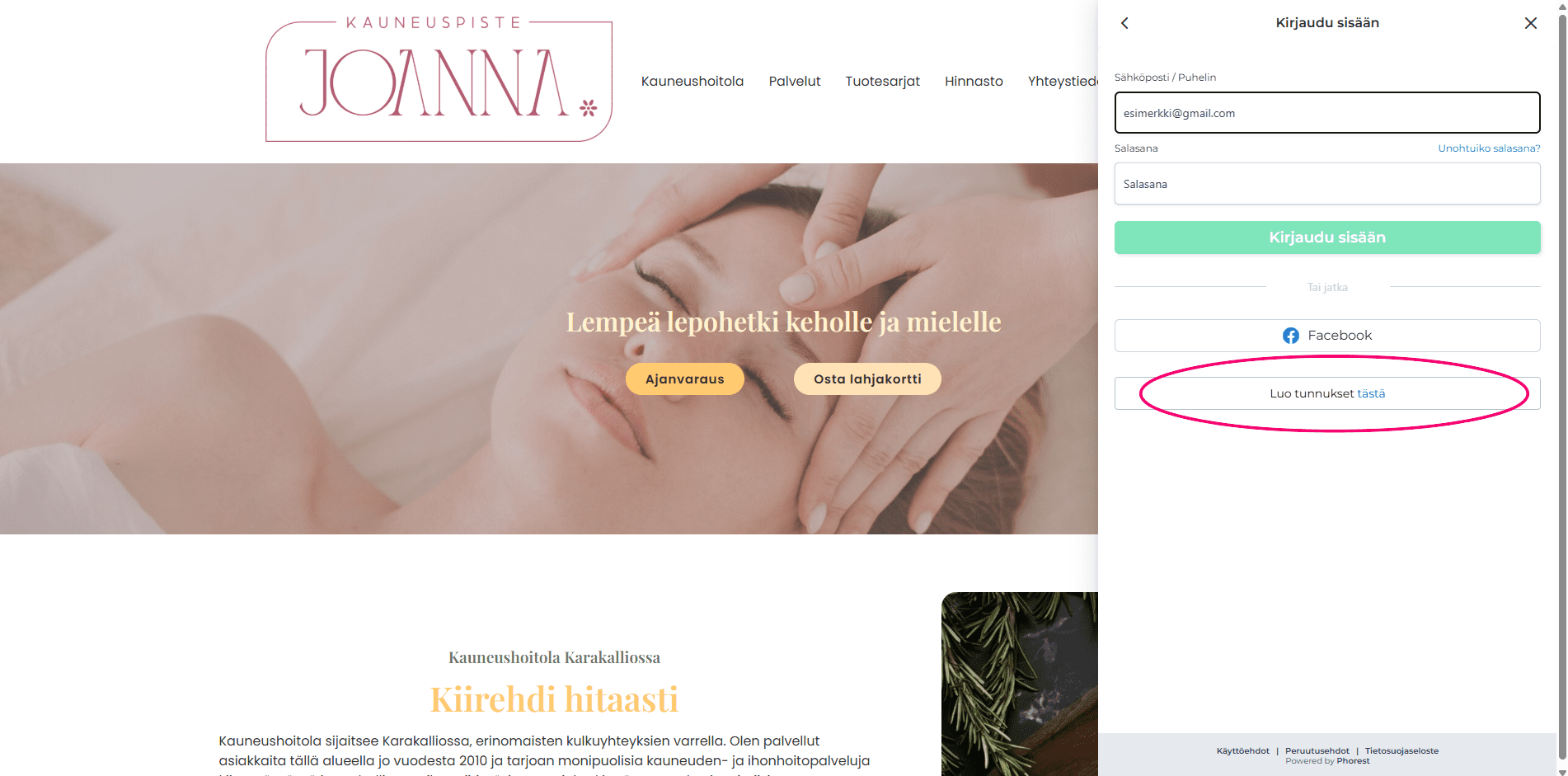 Kun olet valinnut itsellesi sopivan päivän ja kellon ajat pääset vahvistamaan ajan.